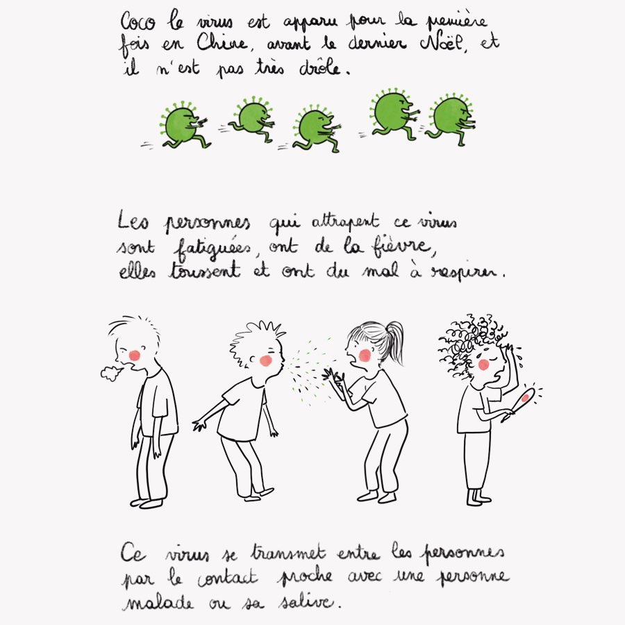 Je vous partage ici la BD de Coco le virus de Marguerite de Livron qui pourra vous être utile pour parler de tout ceci avec vos enfants. coronavirus expliqué aux enfants coronavirus expliqué aux enfants